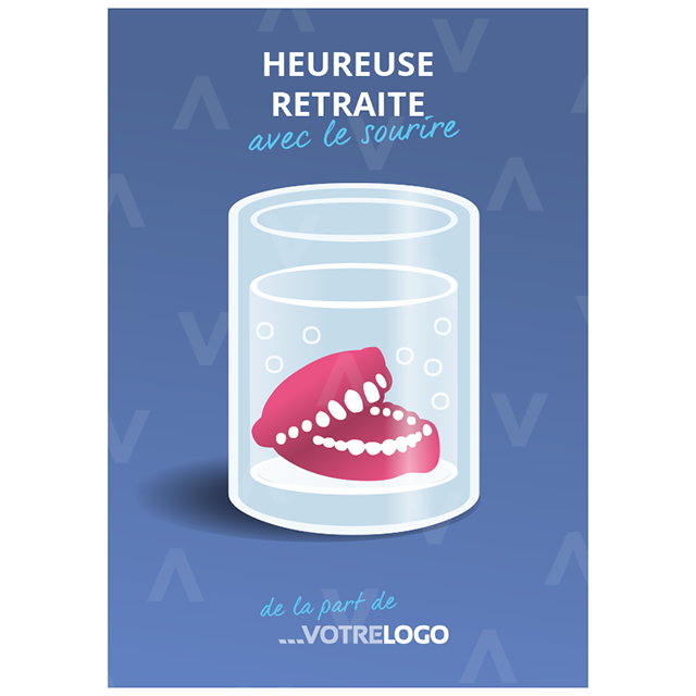 carte, retraite, illustration, humour, dentier, âge, eau, verre, vieux, sourire, râtelier, dents, vieillesse, effervescence, trempage