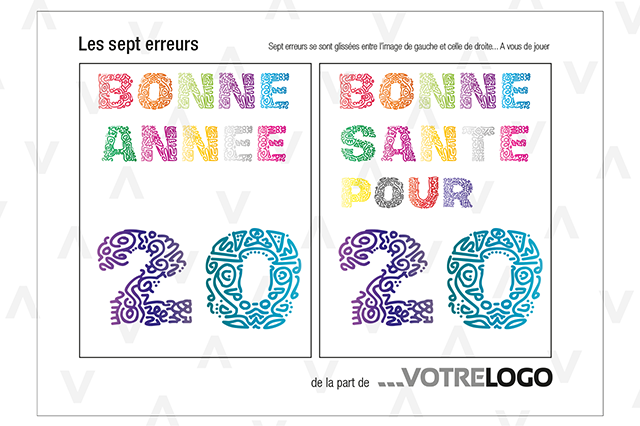 carte, vœux, illustration, dessin, jeu, énigme, réflexion, recherche, observation, erreur, différence, casse-tête, journal, rubrique, couleurs, fun, police, caractère, fonte, lettres